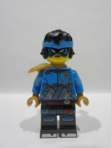 Dark Azure Torso Armor Plates over Dark Silver Tunic, Gold Trim and Ninjago Logogram Letter N, 'NYA' on Back Pattern / Dark Azure Arms / Pearl Gold Hands