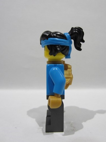 Black Minifigure, Hair Female with Ponytail with Molded Dark Azure Bandana Headband Pattern