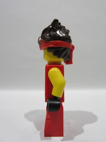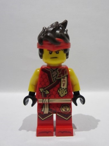 Red Hips and Legs with Bright Light Yellow Sash, Ninjago Logogram Letter K in Circle, Dark Red Robe Ends with Gold Trim, Knee Pads and Toes Pattern