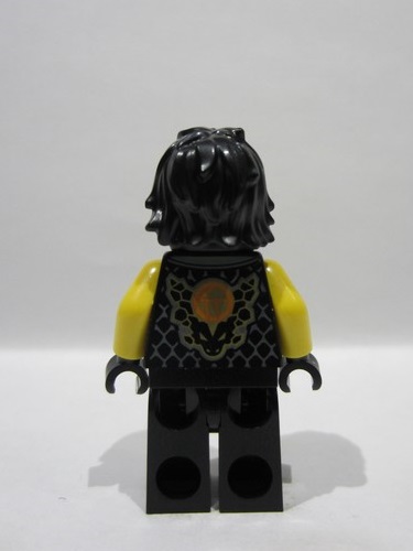 Black Torso Tunic with Dark Bluish Gray Hems, Gold Trim, Dark Orange Shirt, Ninjago Logogram 'MOE', Letter C on Back Pattern / Yellow Arms / Black Hands