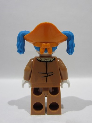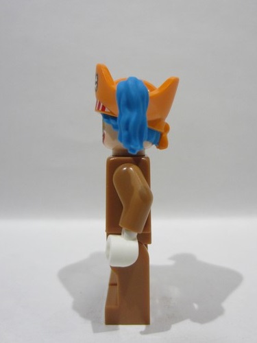 Orange Minifigure, Hair Combo, Pirate Hat with Bandana with Molded Flexible Rubber Dark Azure Hair with Ponytails and Printed Red and White Stripes, Skull and Crossbones (Jolly Roger) Pattern