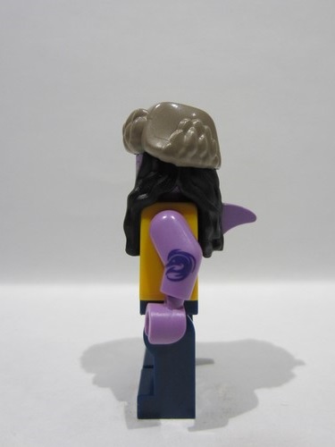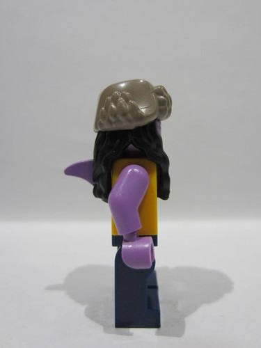Black Minifigure, Hair Combo, Hair with Hat, 2 Braids over Shoulders with Molded Dark Tan Ushanka and Medium Lavender Dorsal Fin Pattern
