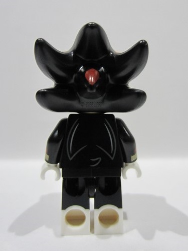 Black Minifigure, Head, Modified Hedgehog, Shadow with Molded Medium Tan Face and Inner Ears and Printed Red Streaks, Eyes on White Background, Black Nose and Open Mouth Scowl Pattern