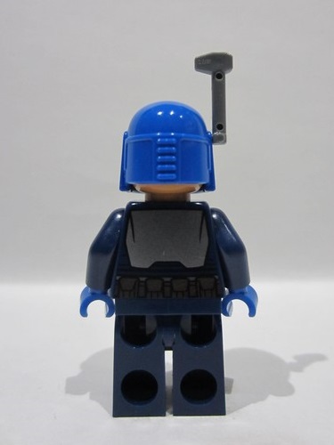 Blue Minifigure, Headgear Helmet with Holes, SW Mandalorian with Silver 'V' and Mask, Dark Bluish Gray Cheek Indents and Black Visor Pattern