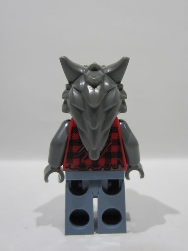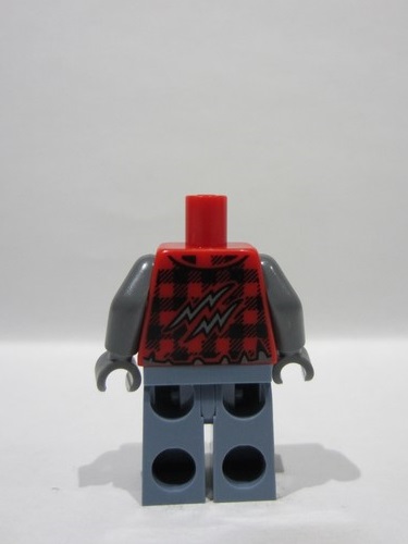 Red Torso Torn Flannel Shirt Open, Black Plaid, Dark Bluish Gray Bare Chest with Fur and Muscles Outline Pattern / Dark Bluish Gray Arms / Dark Bluish Gray Hands