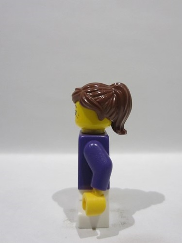 lego 2026 mini figurine twn536 Shopping Street Child Girl, Dark Purple Marching Band Jacket, White Short Legs, Reddish Brown Hair