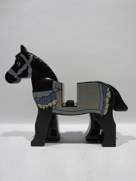 lego 2010 animal 4493c01pb06 Horse Black, Prince of Persia with Black and White Eyes, White Pupils and Sand Blue and Gold Bridle and Persian Blanket Pattern (Aksh)