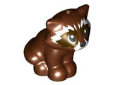 lego 2023 animal 77110pb02 Raccoon Reddish Brown, Friends with White Muzzle, Black Nose, Dark Brown Markings on Face Pattern