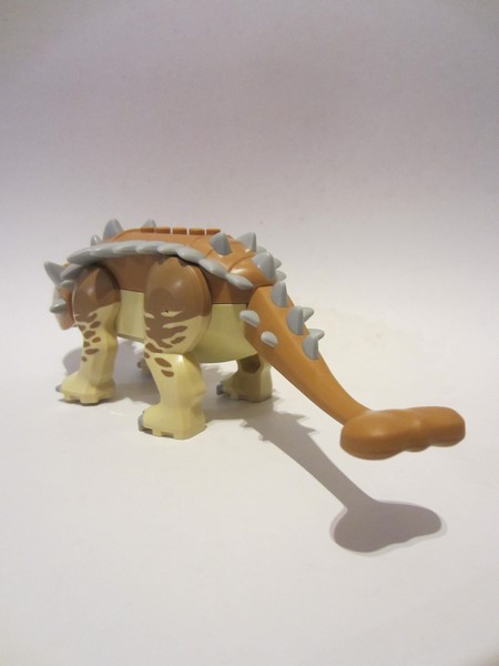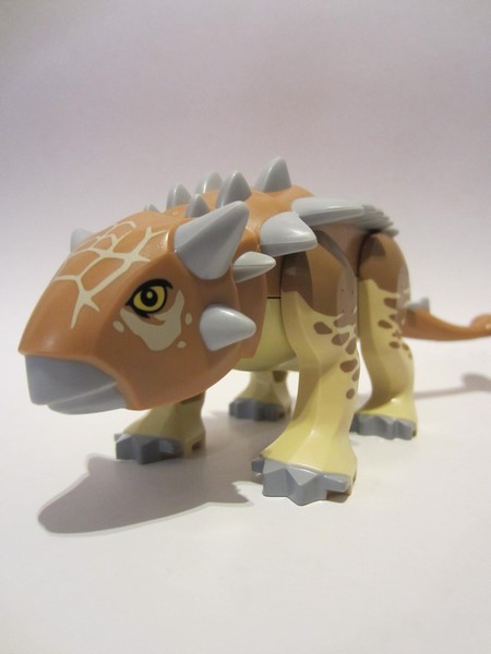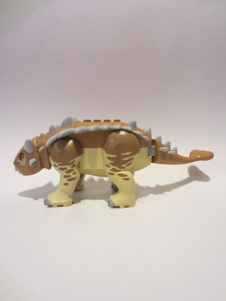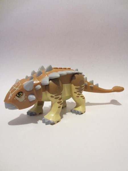 Medium Nougat Dinosaur Body Ankylosaurus with Light Bluish Gray Beak and Spikes, Tan Markings and Yellow Eyes Pattern