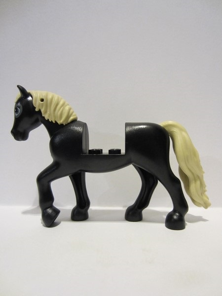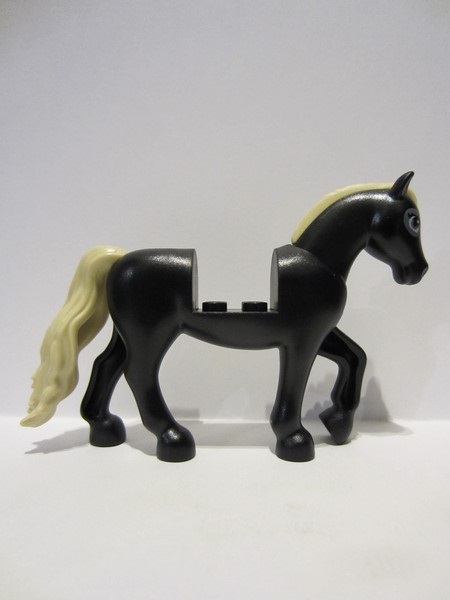 lego 2022 animal bb1279c01pb08 Horse Black, with 2 x 2 Cutout and Movable Neck with Molded Tan Tail and Mane, Printed Dark Bluish Gray Eye Patches Pattern