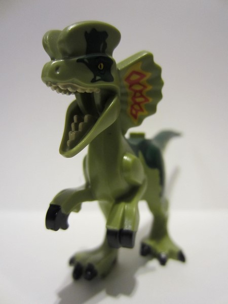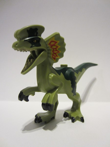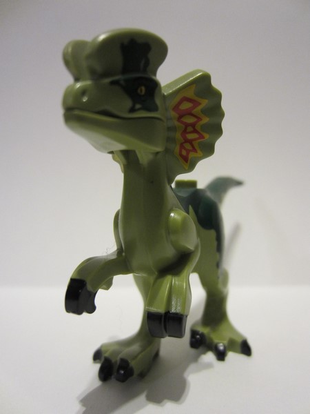 lego 2023 animal dilo04 Dilophosaurus Olive Green, Dinosaur Dilophosaurus Second Version with Flexible Rubber Tail, Bright Light Orange, Red and Dark Green Markings