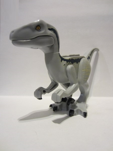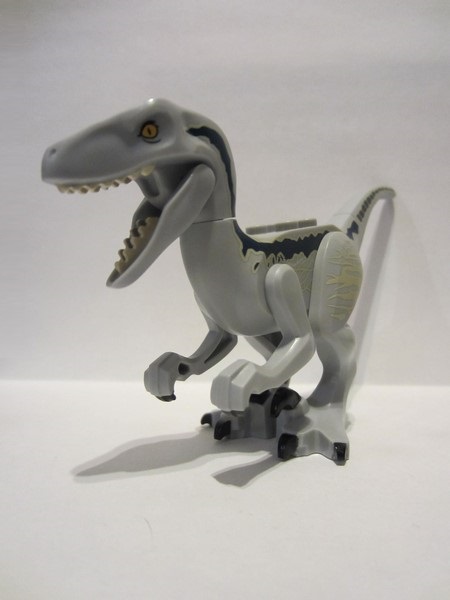 Light Bluish Gray, Dinosaur Raptor / Velociraptor with Dark Blue and Tan Markings (Jurassic World Blue)