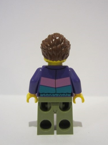 lego 2019 mini figurine bdp020 Skyline Express Man Dark Purple Jacket, Olive Green Legs, Reddish Brown Hair