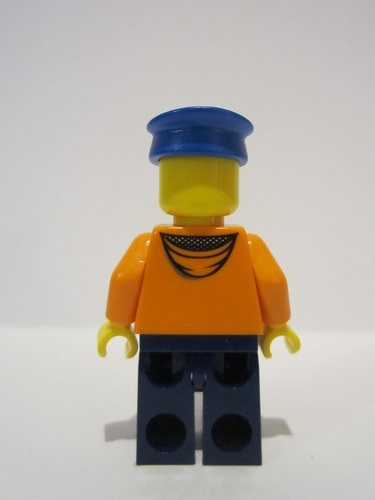 lego 2019 mini figurine bdp022 Skyline Express Man Orange Jacket with Hood over Light Blue Sweater, Dark Blue Legs, Blue Hat