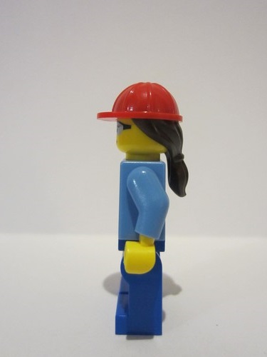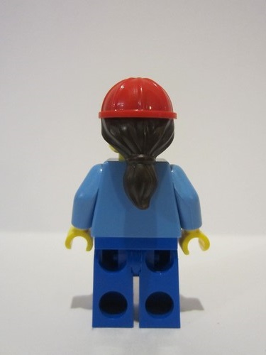 Red Minifigure, Headgear Helmet Construction with Molded Dark Brown Ponytail Hair Pattern