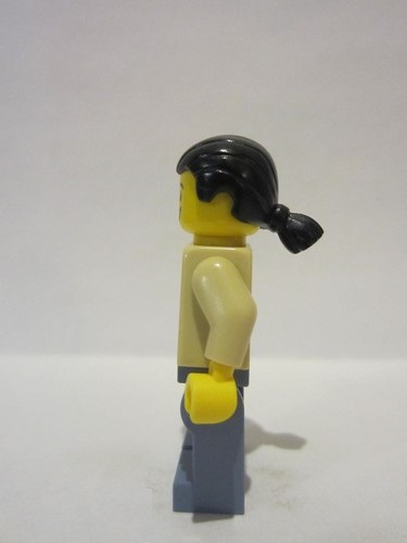 lego 2022 mini figurine bdp031 Citizen Male, Tan Shirt, Sand Blue Legs, Black Ponytail Hair