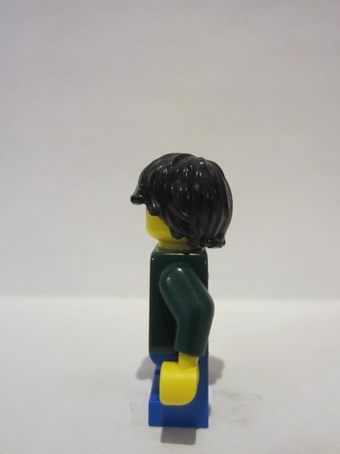 lego 2022 mini figurine bdp034 Boy Dark Green Hoodie with Bright Green Drawstrings, Blue Short Legs, Black Tousled Hair