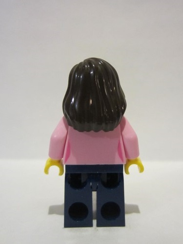 lego 2022 mini figurine bdp035 Citizen Female, Bright Pink Top, Dark Blue Legs, Dark Brown Hair
