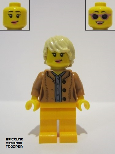 lego 2022 mini figurine bdp046 Citizen Female, Medium Nougat Jacket, Bright Light Orange Legs, Tan Hair