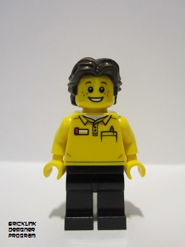 lego 2022 mini figurine bdp056 LEGO Store Employee Black Legs, Dark Brown Short Wavy Hair