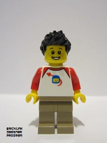 lego 2023 mini figurine bdp067 Son Classic Space Shirt with Red Sleeves, Dark Tan Legs, Black Spiked Hair