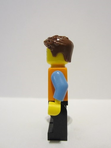 lego 2023 mini figurine bdp082 Train Driver Male, Orange Safety Vest with Reflective Stripes, Black Legs, Reddish Brown Hair