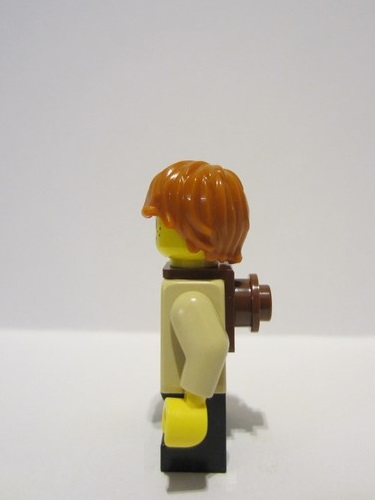 lego 2023 mini figurine bdp083 Traveler Boy, Tan Knit Sweater, Black Short Legs, Reddish Brown Neck Bracket and Round Plate, Dark Orange Hair