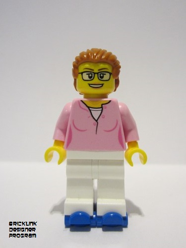 lego 2023 mini figurine bdp096 1950s Diner Waitress Bright Pink Top, White Legs, Dark Orange Hair, Blue Roller Skates