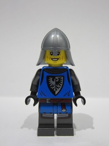 Blue Torso Castle Surcoat, Silver Chain Mail Collar, Black Falcon with Spread Wings Shield Emblem Pattern / Pearl Dark Gray Arms / Black Hands