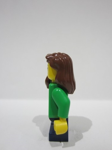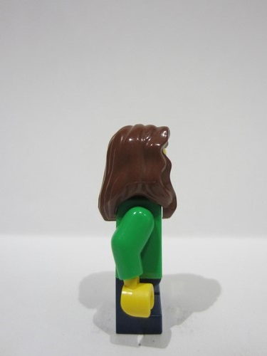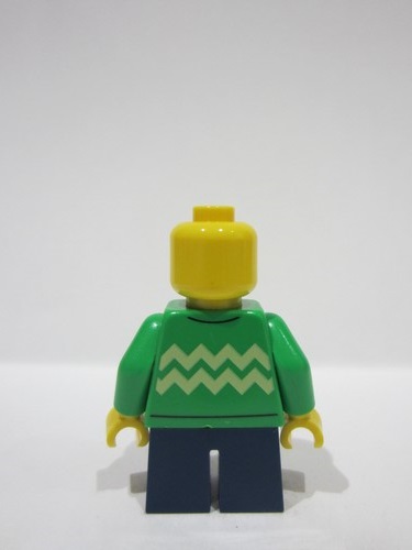 lego 2024 mini figurine bdp110 Child Girl, Bright Green Sweater with Bright Light Yellow Zigzag Lines, Dark Blue Short Legs, Reddish Brown Hair over Shoulder