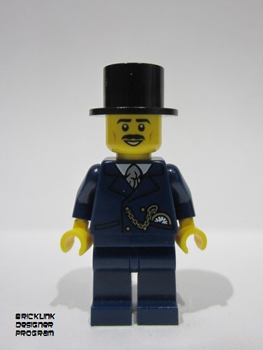 lego 2024 mini figurine bdp117 General Store Customer Male, Dark Blue Suit, Black Top Hat, Black Moustache