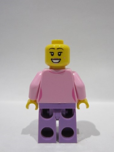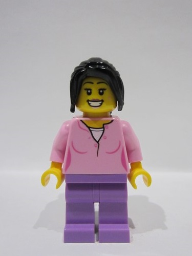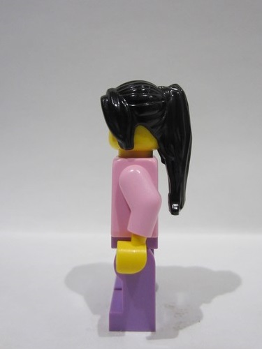 lego 2024 mini figurine bdp136 Singer Female, Bright Pink Top, Medium Lavender Legs, Black Hair Ponytail Long with Side Bangs