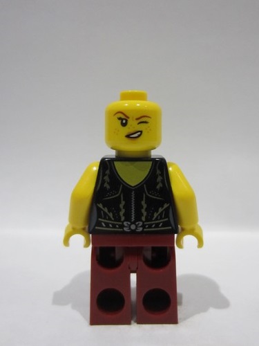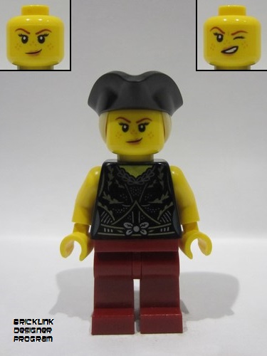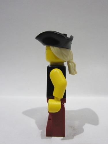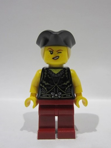 lego 2024 mini figurine bdp146 Pirate Female, Black Dress Top, Dark Red Legs, Black Tricorne Hat with Tan Ponytail