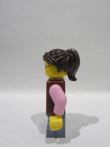 lego 2025 mini figurine bdp148 Child Girl, Reddish Brown Jacket, Sand Blue Short Legs, Dark Brown Ponytail