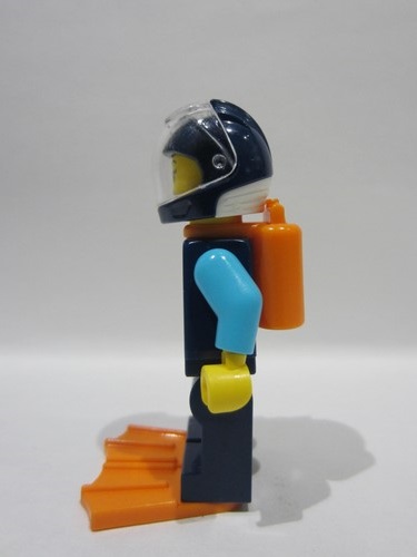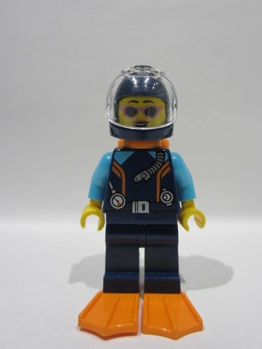 lego 2025 mini figurine bdp151 Harbormaster's Office Diver Dark Blue Diving Suit and Helmet, Orange Air Tanks and Flippers, Trans-Clear Visor