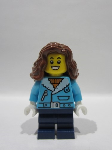 lego 2025 mini figurine bdp160 The Art of Chocolate Customer Girl, Medium Azure Jacket, Dark Blue Medium Legs, Reddish Brown Wavy Hair