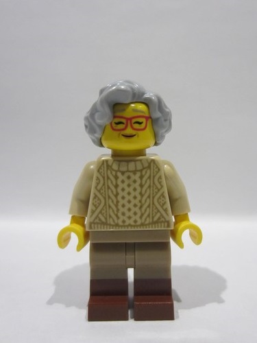 lego 2025 mini figurine bdp161 The Art of Chocolate Customer Female, Tan Knit Cable Sweater, Dark Tan Legs, Reddish Brown Boots, Light Bluish Gray Short Wavy Hair