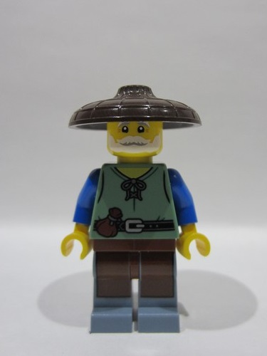 lego 2025 mini figurine bdp190 Riverside Scholars Male, Sand Green Vest, Reddish Brown Apron, Sand Blue Legs, Dark Brown Conical Hat, White Beard