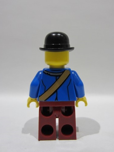 lego 2025 mini figurine bdp192 Wild West Train Bandit Male, Blue Jacket, Dark Red Legs, Black Bowler Hat