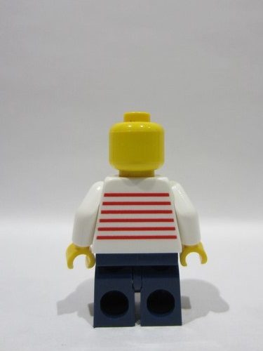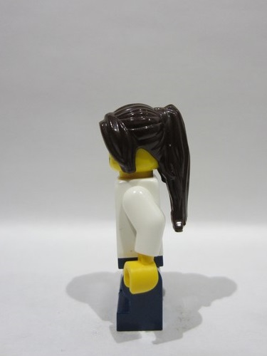 lego 2025 mini figurine bdp205 Merchant Boat - Girl White Sweater with Red Horizontal Stripes, Dark Blue Medium Legs, Dark Brown Hair Ponytail Long with Side Bangs, Freckles