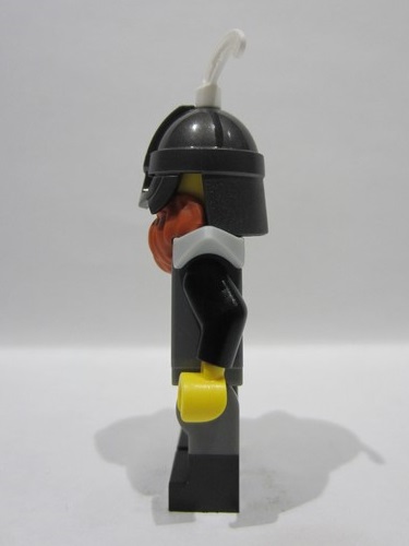 Male, Dark Bluish Gray and Silver Armor, Black Boots, Pearl Dark Gray Helmet, White Feather, Dark Orange Beard, Light Bluish Gray Shoulder Pads