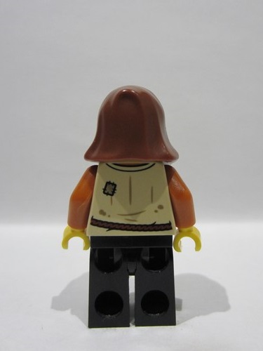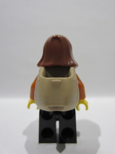 lego 2025 mini figurine bdp214 Peasant Male, Tan Vest, Black Legs, Reddish Brown Hood, Dark Tan Backpack