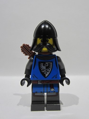 lego 2025 mini figurine bdp216 Black Falcon Archer Male, Pearl Dark Gray Detailed Legs, Black Helmet with Neck Protector, Moustache, Quiver
