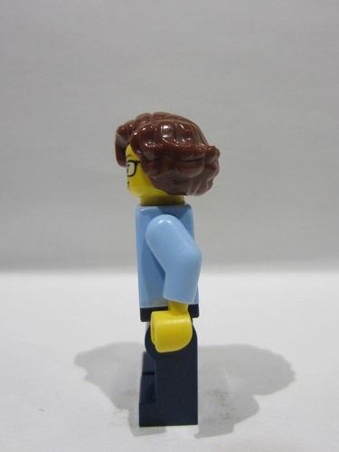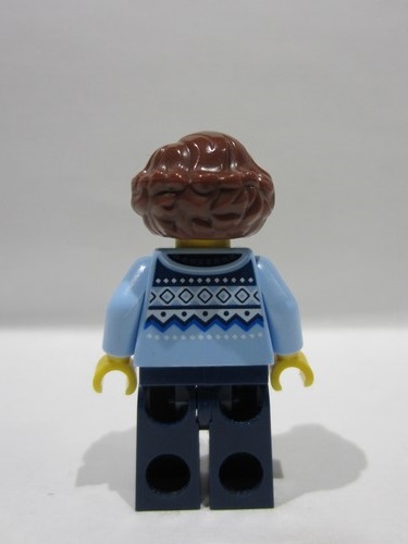 lego 2025 mini figurine bdp228 Antique Shop Antique Shop - Female, Bright Light Blue Knit Fair Isle Sweater, Dark Blue Legs, Reddish Brown Wavy Hair