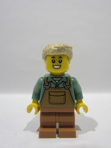 lego 2025 mini figurine bdp246 Mushroom Village Female, Medium Nougat Overalls over Sand Green Shirt, Medium Nougat Medium Legs, Tan Hair