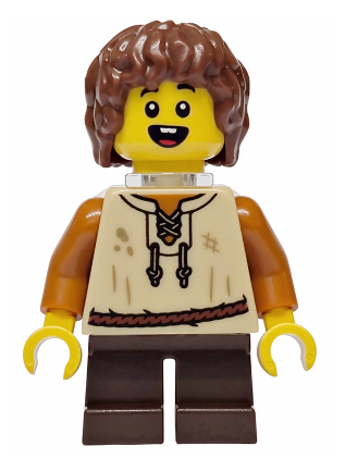 lego 2025 mini figurine bdp247 Mushroom Village Male, Tan Vest, Dark Brown Short Legs, Neck Bracket, Reddish Brown Hair