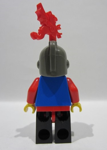 lego 1992 mini figurine cas179 Breastplate Blue with Red Arms, Black Legs with Red Hips, Dark Gray Grille Helmet, Red Plume Dragon