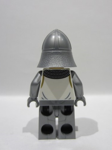 Flat Silver Hips and Legs with White Surcoat Ends, Gold Trim, Black Belt with Buckle and Horseshoe Pattern