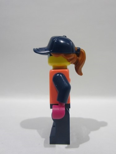 lego 2022 mini figurine cty1458 Stuntz Crew Female, Dark Blue Cap, Coral Shirt with Sports Logo, Dark Blue Legs