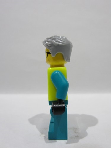 Male, Dark Turquoise and Neon Yellow Safety Vest, Legs with Silver Reflective Stripes, Glasses, Light Bluish Gray Hair